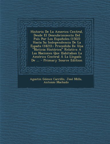 Historia de La America Central, Desde El Descubrimiento del Pais Por Los Espanoles (1502) Hasta Su Independencia de La Espana (1821).: Precedida de Un pdf Agustin Gomez Carrillo
